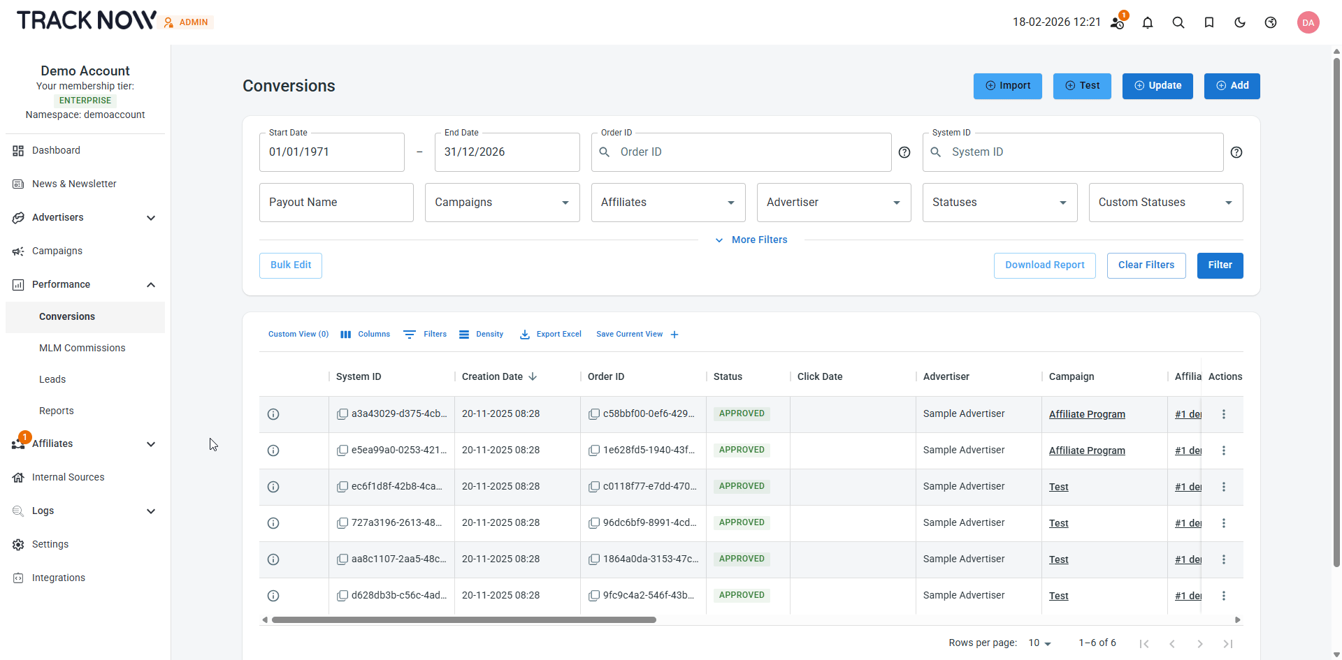 6. **Test** - A status for conversions that were made as tests - commissions will not be available for the affiliate. (Visible to the affiliate)